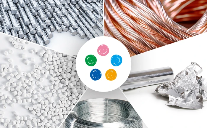 ぼくの周りについているのは、選別した5種類の素材なんだ。それぞれ銅、鉄、プラスチック、アルミニウム、ステンレスを表しているよ!